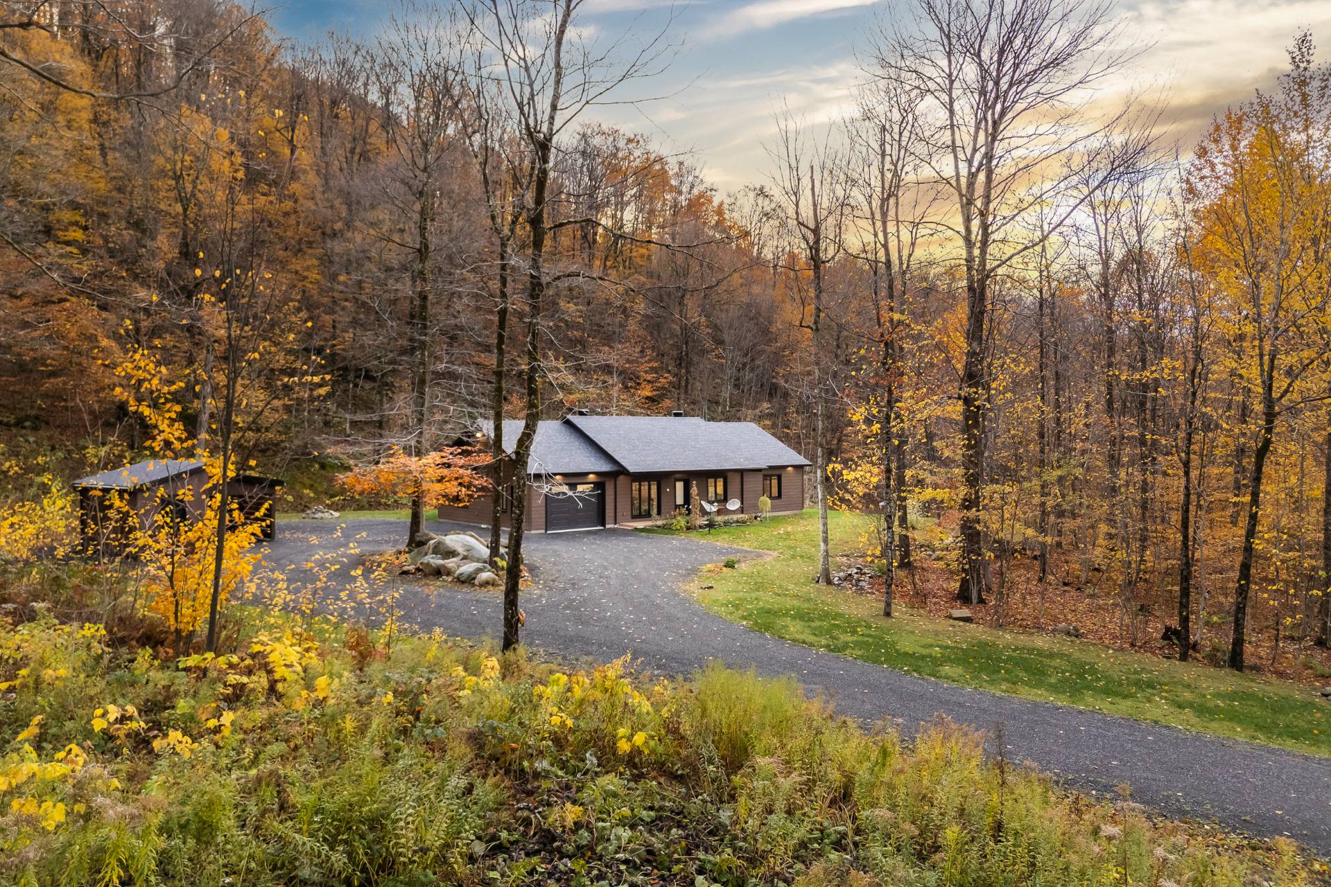 Plain-pied lumineux à Sutton -- tranquillité et charme assurés! Découvrez ce superbe plain-pied adossé au flanc de la montagne, dans un environnement paisible et verdoyant. Grande chambre principale avec salle de bain attenante, deux autres chambres (ou bureau), cuisine à aire ouverte avec salle à manger au solarium et salon chaleureux. Garage intégré, abri d'auto et terrain intime bordé par la nature. Un véritable havre de paix à quelques minutes du village de Sutton et de ses attraits!