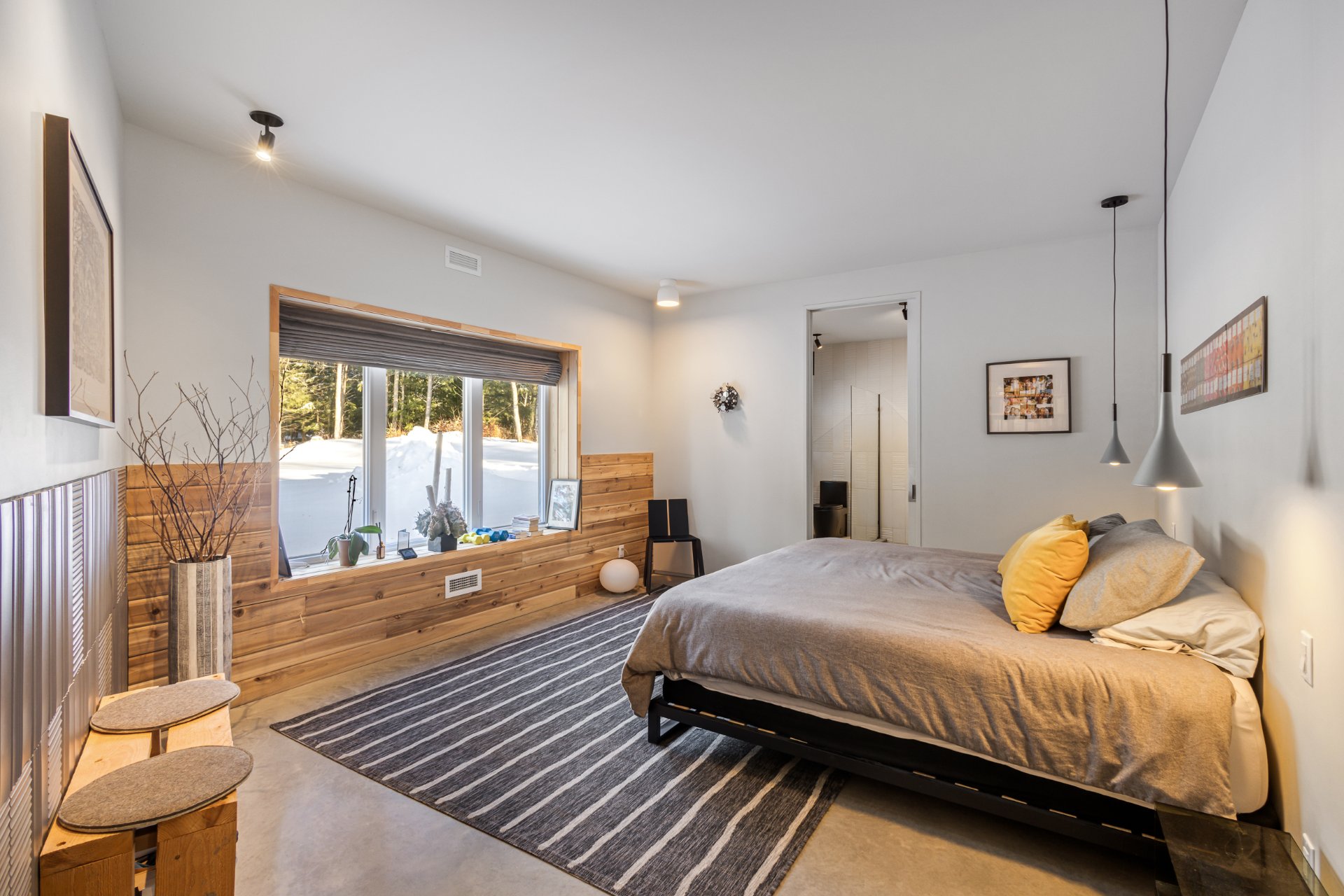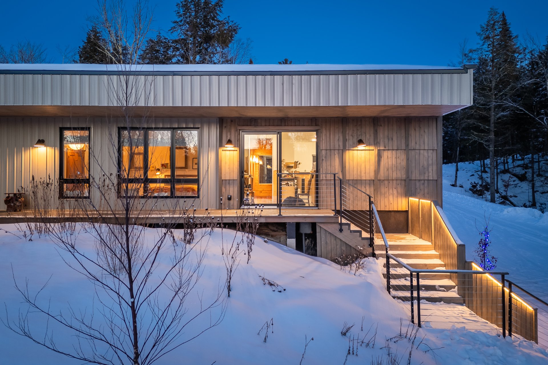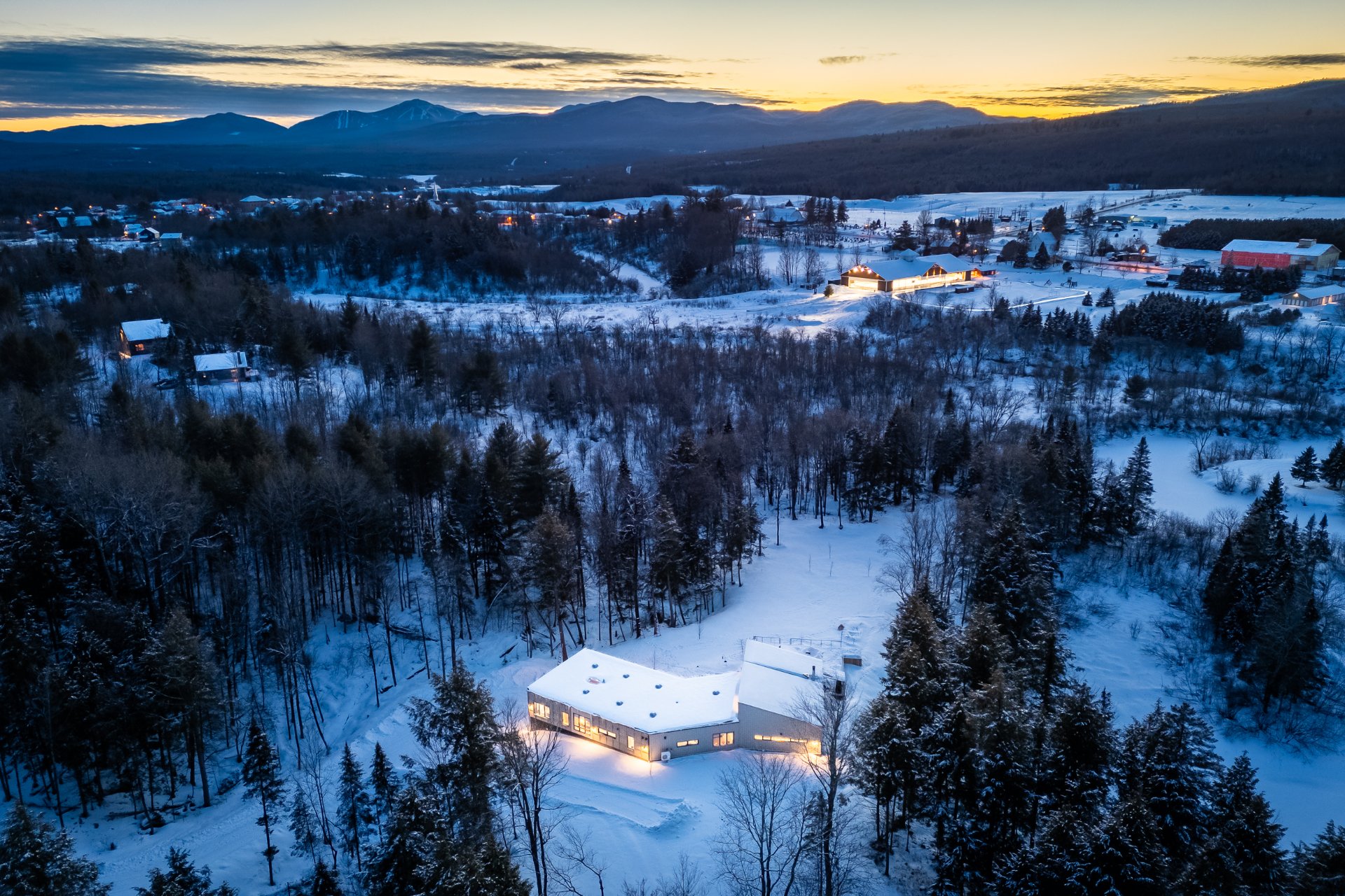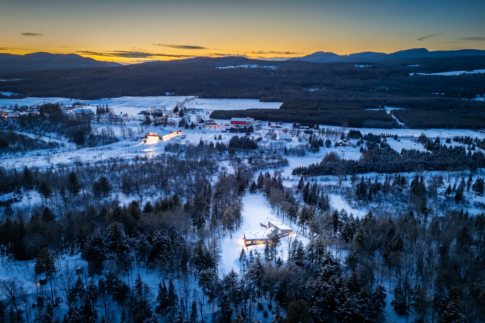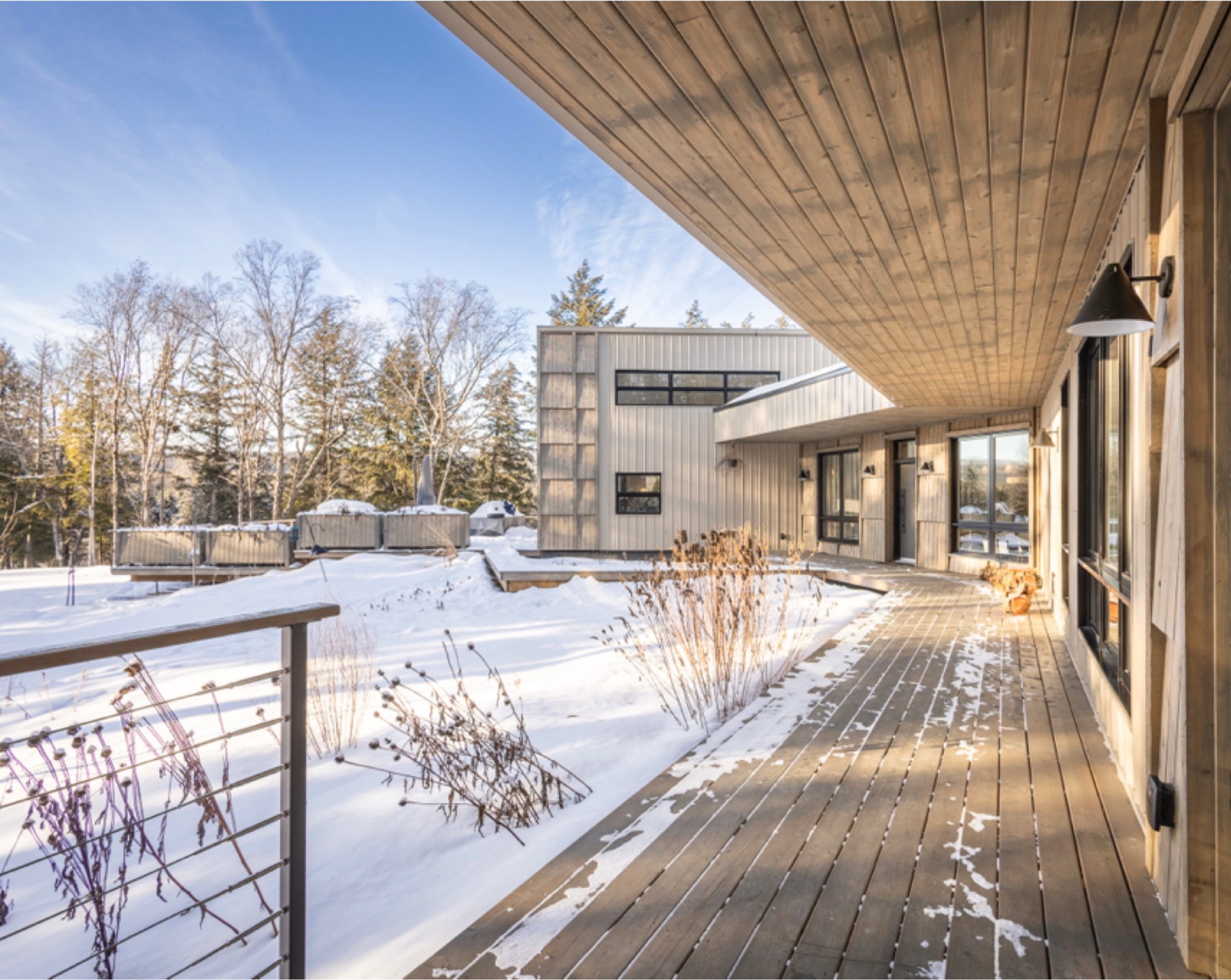 Soigneusement conçue et harmonieusement intégrée à son environnement naturel, cette propriété distinctive offre un équilibre rare entre architecture, paysage et art de vivre. Implantée en retrait le long d'un chemin privé, la maison se dévoile progressivement, ouvrant sur des vues sur les montagnes, l'étang et la rivière Missisquoi. Sa façade en cèdre, inspirée des granges japonaises, marie avec élégance matériaux naturels et industriels. À l'extérieur, une vaste terrasse avec spa, des prairies aménagées et un quai flottant offrent un accès direct à la rivière et des activités en toute saison.