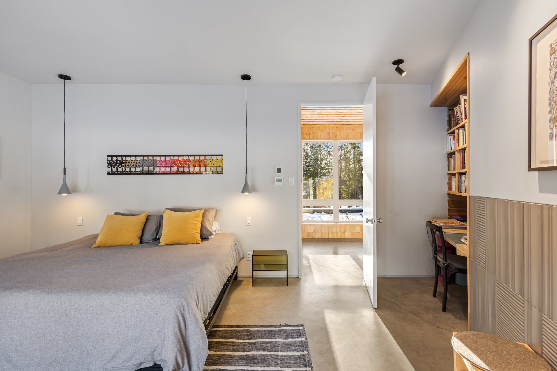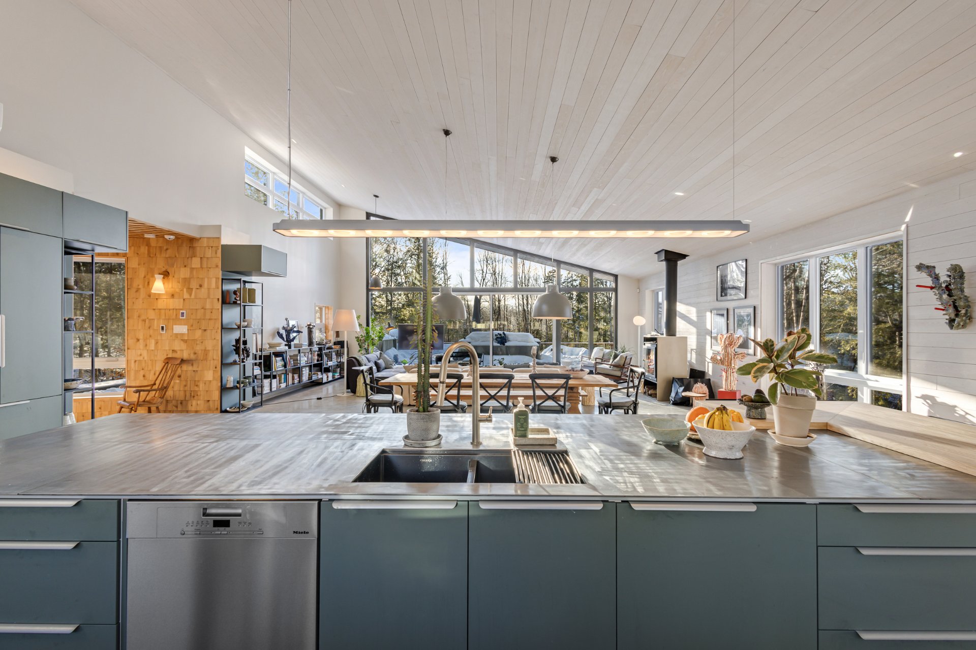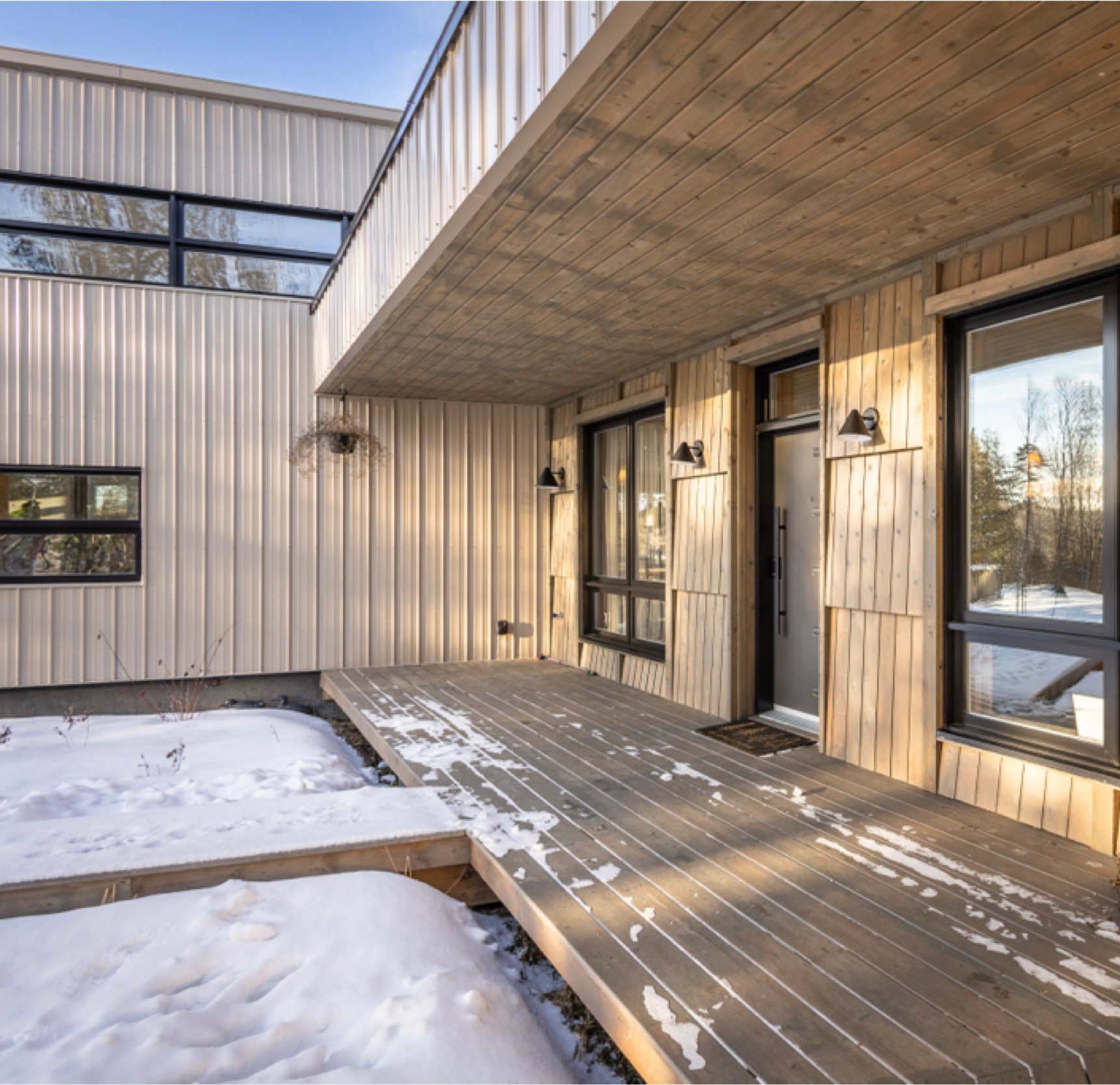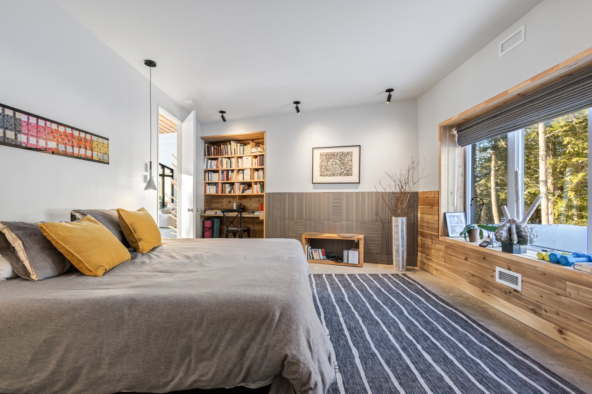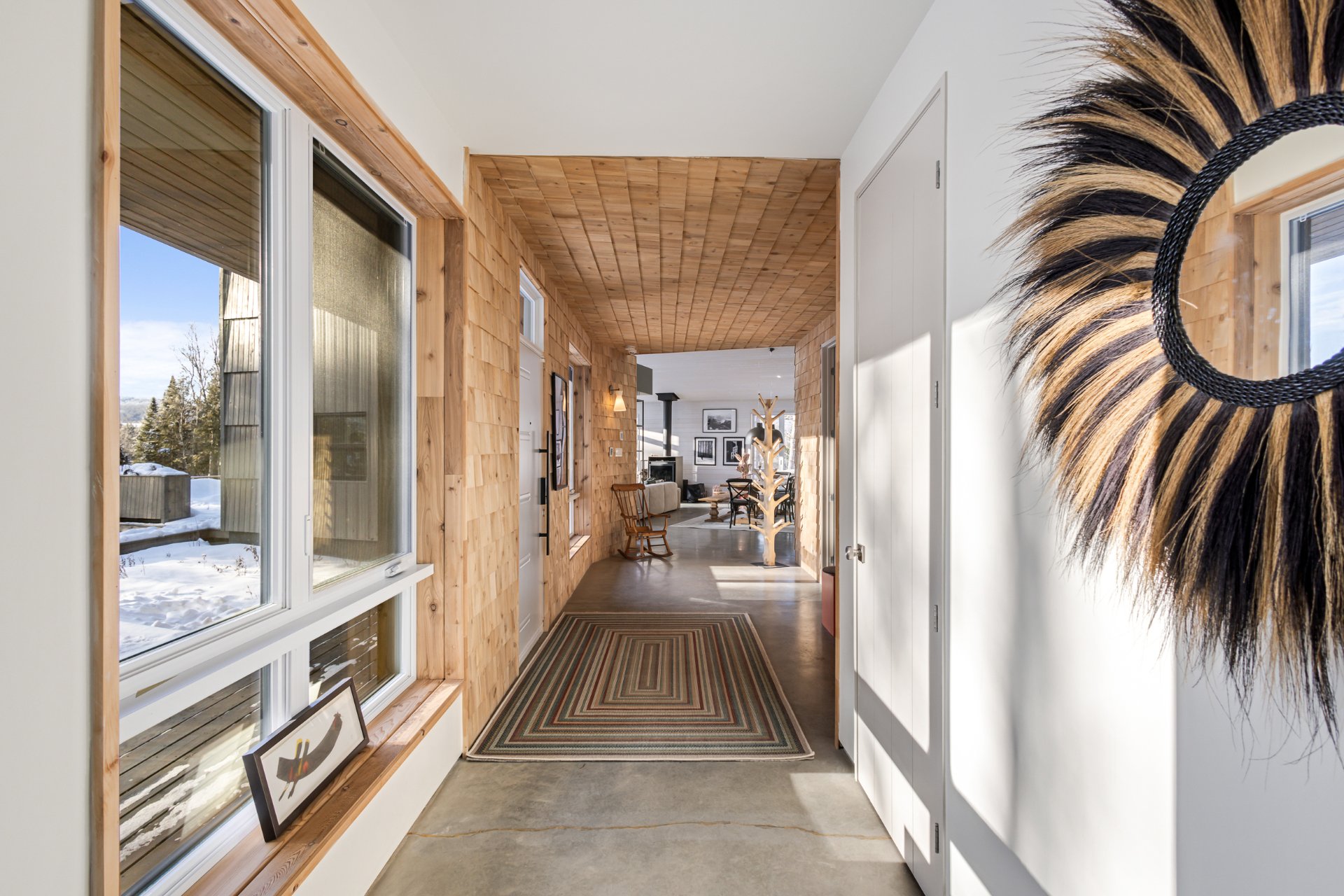 Soigneusement conçue et harmonieusement intégrée à son environnement naturel, cette propriété distinctive offre un équilibre rare entre architecture, paysage et art de vivre. Implantée en retrait le long d'un chemin privé, la maison se dévoile progressivement, ouvrant sur des vues sur les montagnes, l'étang et la rivière Missisquoi. Sa façade en cèdre, inspirée des granges japonaises, marie avec élégance matériaux naturels et industriels. À l'extérieur, une vaste terrasse avec spa, des prairies aménagées et un quai flottant offrent un accès direct à la rivière et des activités en toute saison.