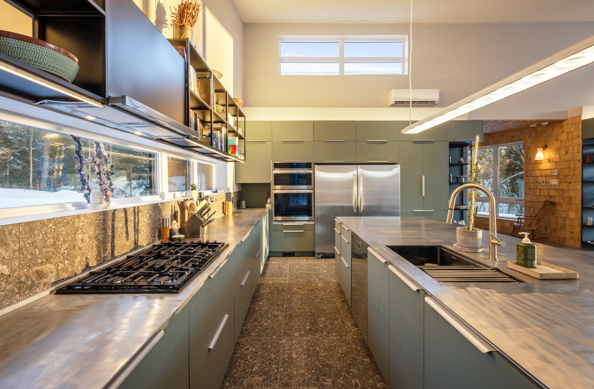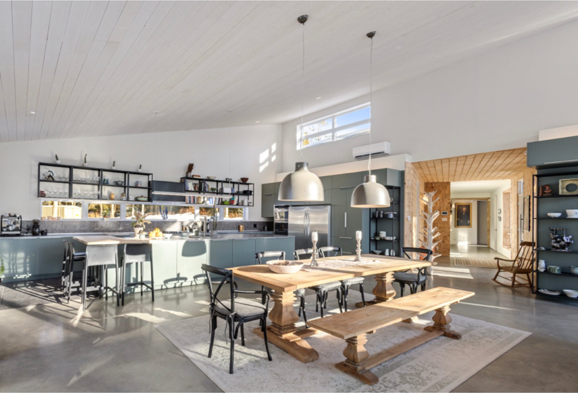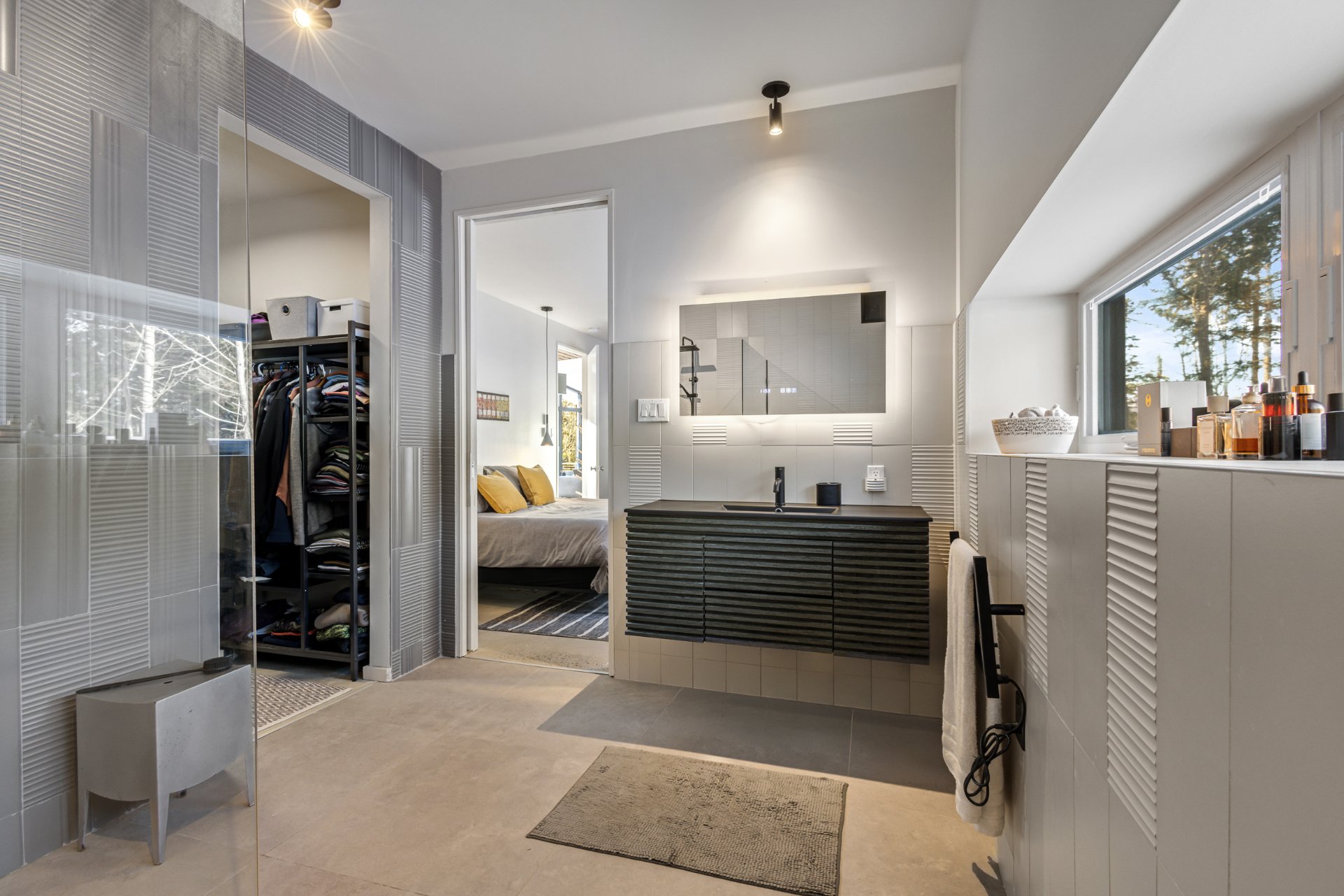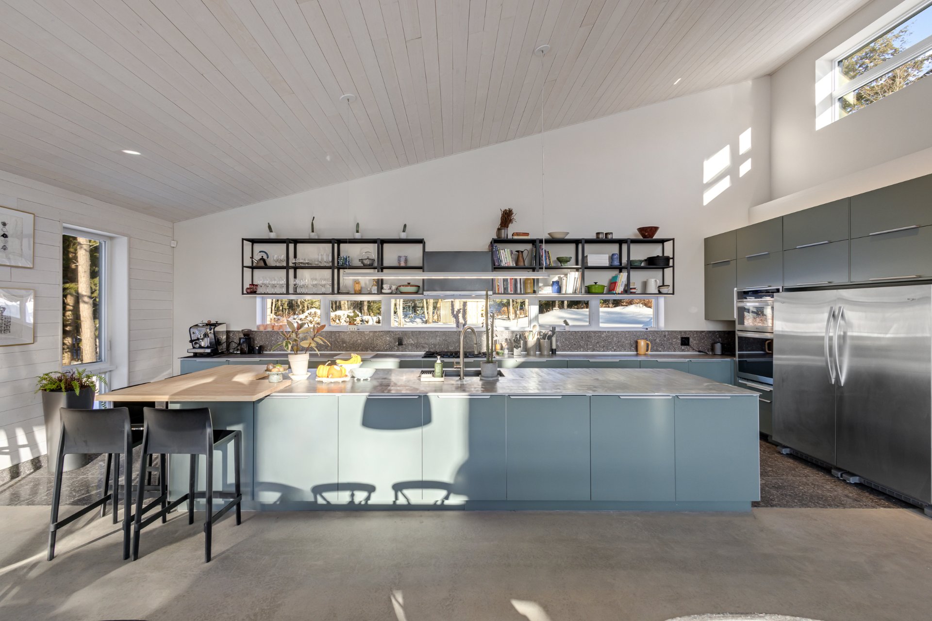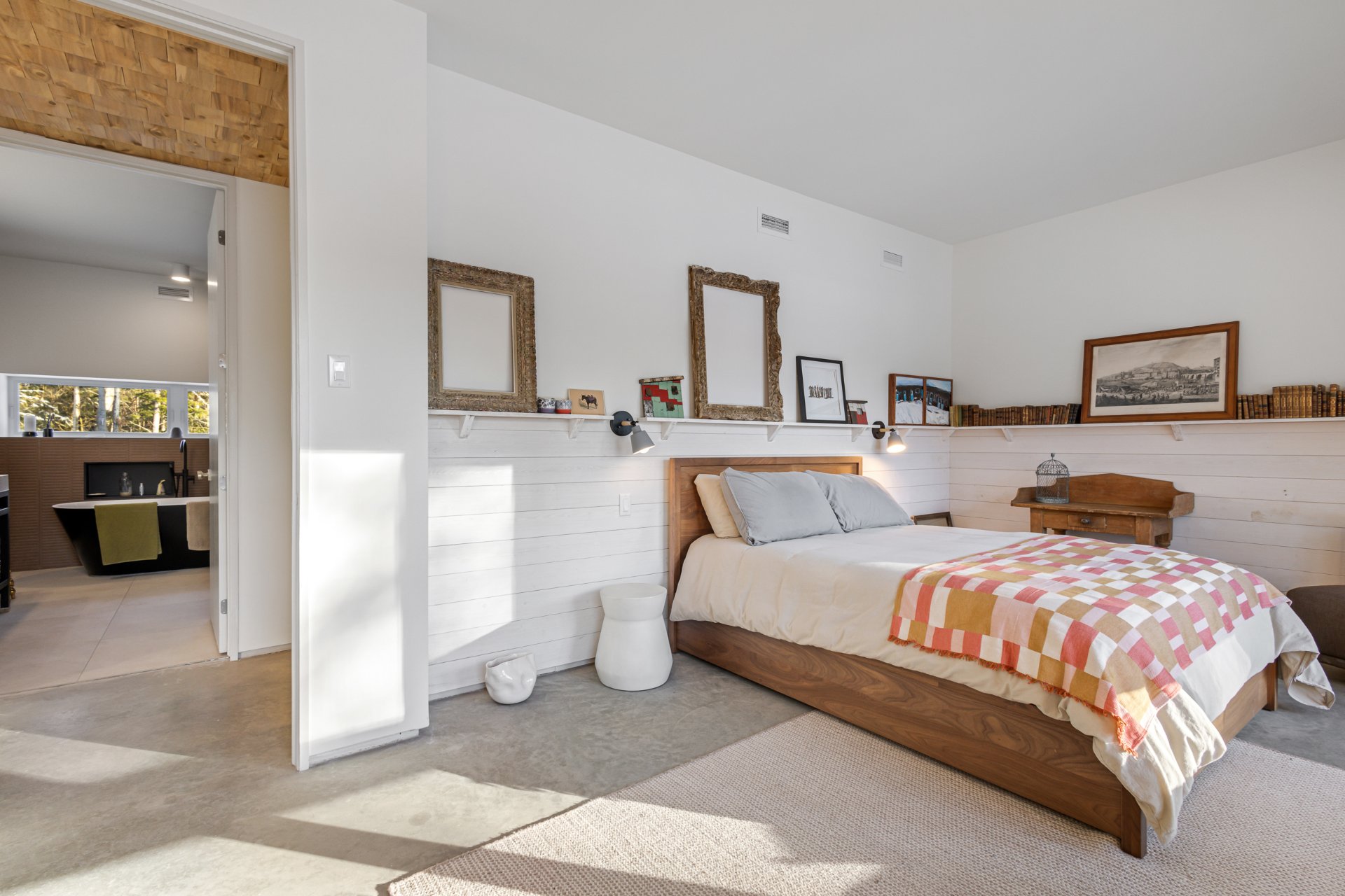 Soigneusement conçue et harmonieusement intégrée à son environnement naturel, cette propriété distinctive offre un équilibre rare entre architecture, paysage et art de vivre. Implantée en retrait le long d'un chemin privé, la maison se dévoile progressivement, ouvrant sur des vues sur les montagnes, l'étang et la rivière Missisquoi. Sa façade en cèdre, inspirée des granges japonaises, marie avec élégance matériaux naturels et industriels. À l'extérieur, une vaste terrasse avec spa, des prairies aménagées et un quai flottant offrent un accès direct à la rivière et des activités en toute saison.