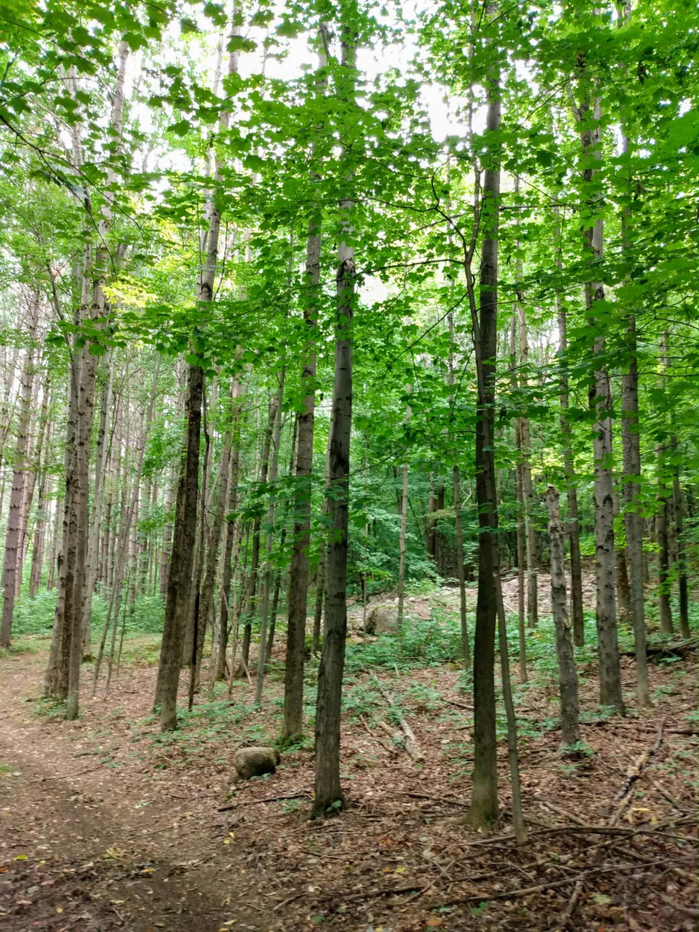 Il s'agit d'une propriété pour le moins très intéressante. Elle compte environ 30 acres de terrain principalement boisé, niché dans le magnifique quartier Iron Hill de la Ville de Lac-Brome. Le terrain NE BÉNÉFICIE PAS d'un droit de construction, car il se trouve dans une zone agricole. L'accès enregistré au terrain se fait par une servitude de passage de 40 pieds. Il y a plusieurs érables centenaires et une source d'eau en amont du terrain, ce qui permet d'obtenir de l'eau par gravité. Un petit ruisseau intermittent coule devant le camp. Plusieurs sentiers sillonnent également le terrain.