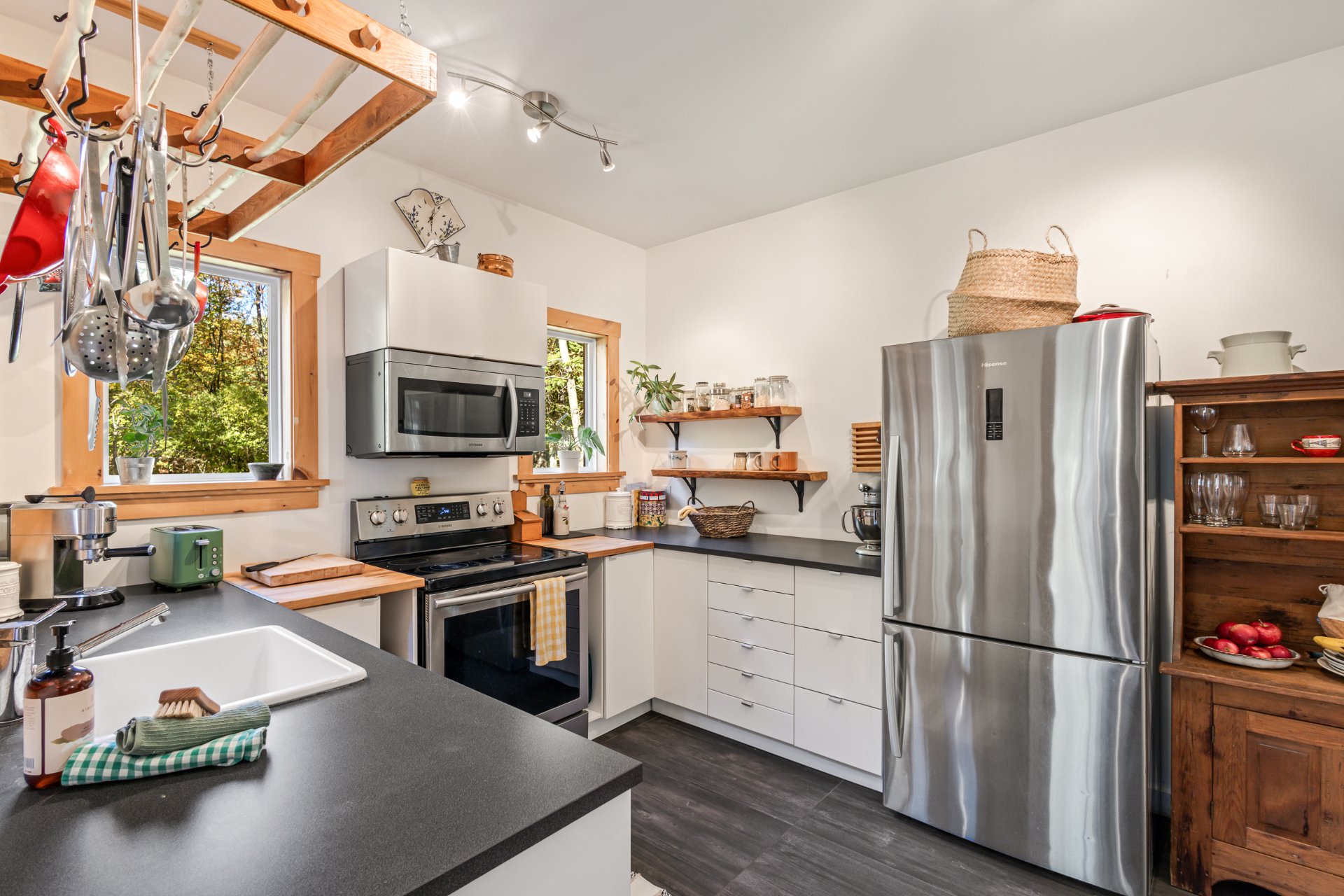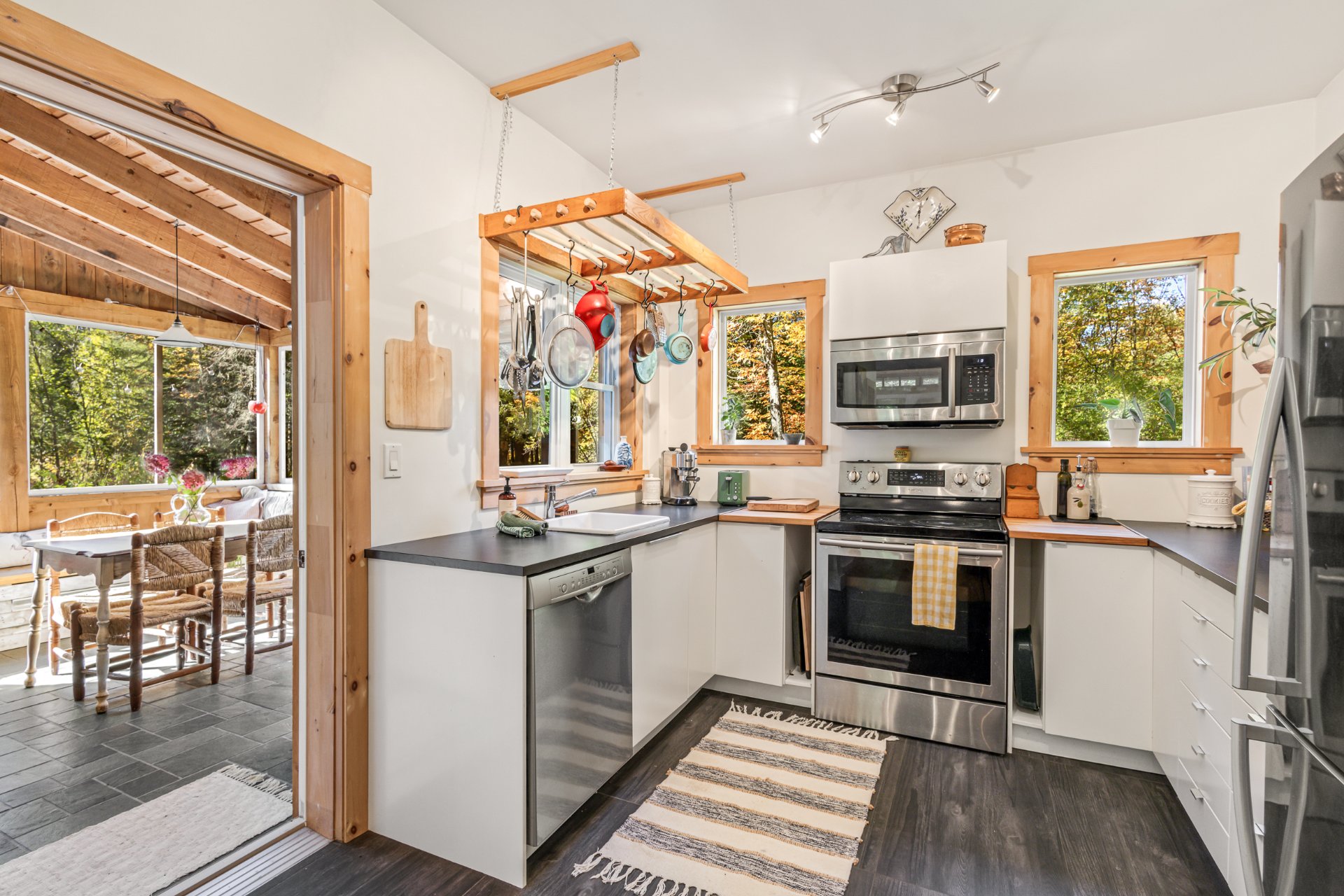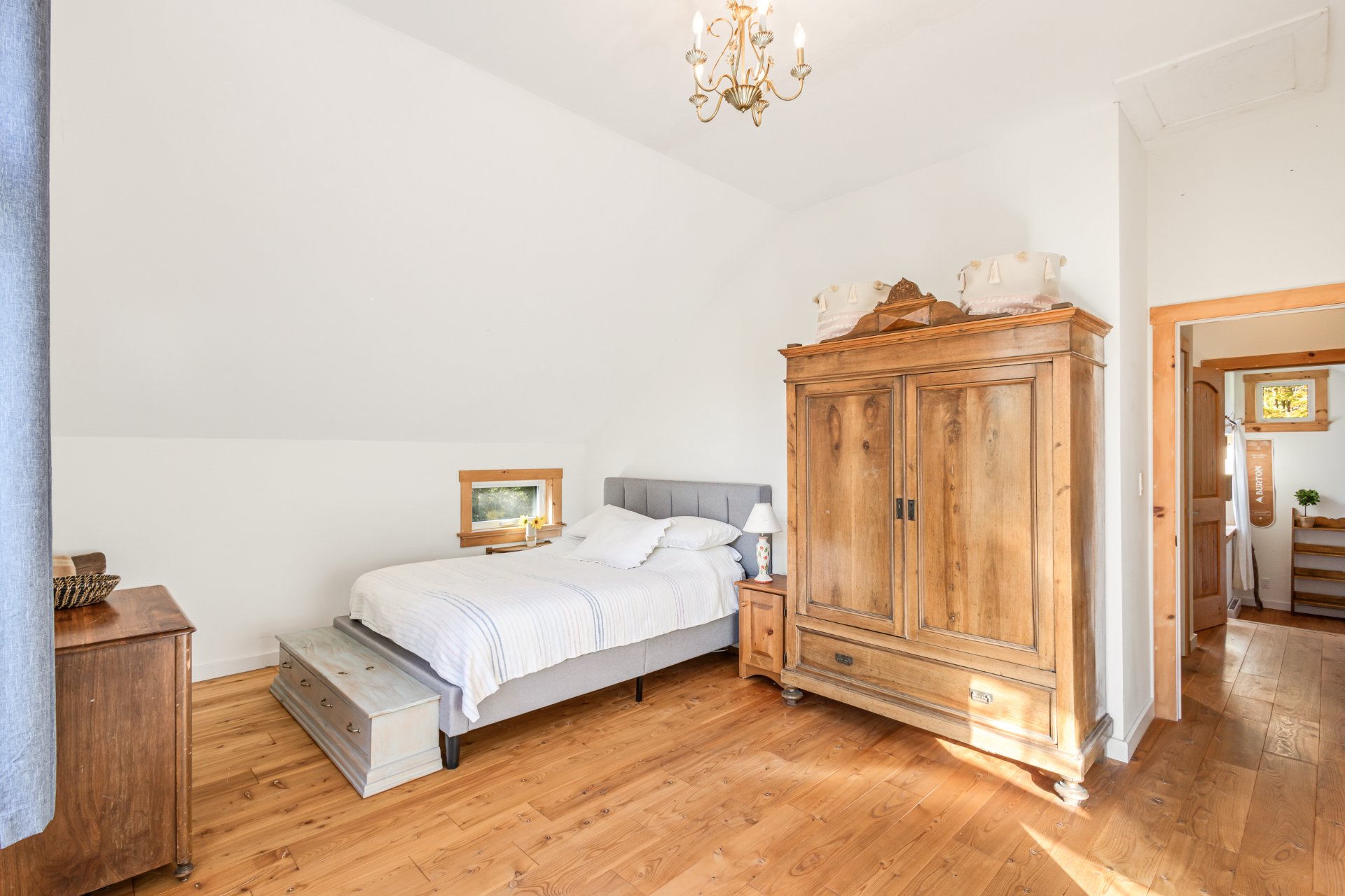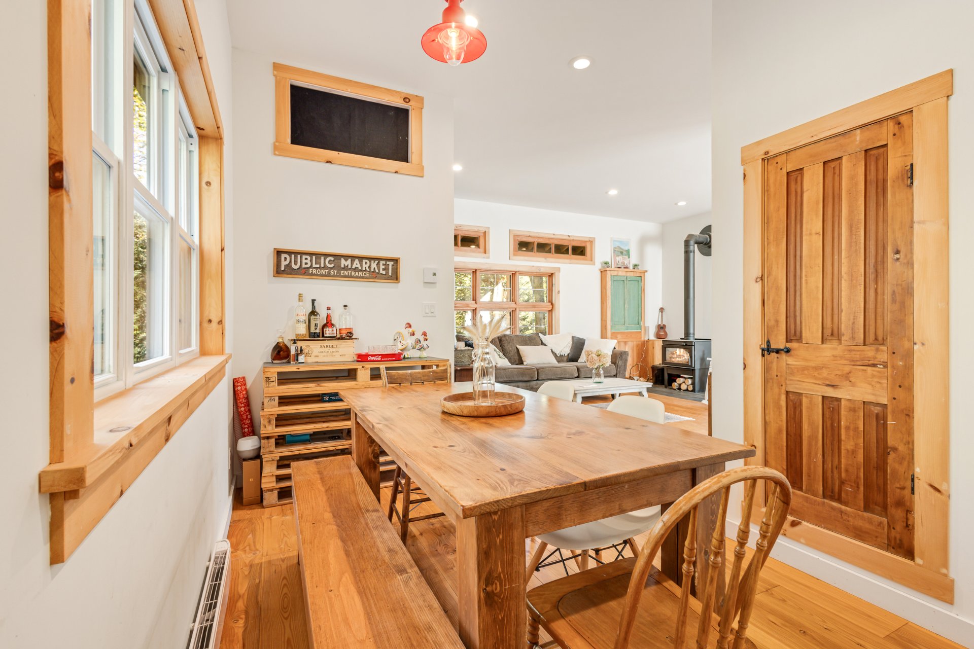 Nichée au coeur d'un paisible boisé, The Barn est une charmante maison de style grange offrant le refuge campagnard idéal. Ses planchers de pin, son poêle à bois et ses accents intemporels lui confèrent une élégance rustique et chaleureuse. Son revêtement de bois et son toit d'acier s'harmonisent parfaitement avec la nature environnante, tandis que l'intérieur accueillant dégage confort et authenticité. La véranda moustiquaire invite à de longues soirées d'été entre amis ou en famille, et l'étang tout près ajoute une touche de sérénité au paysage. Entourée par la nature, mais à proximité de Knowlton, Sutton, Bromont et Cowansville.