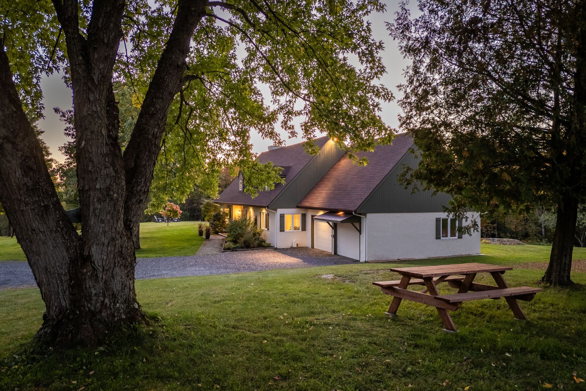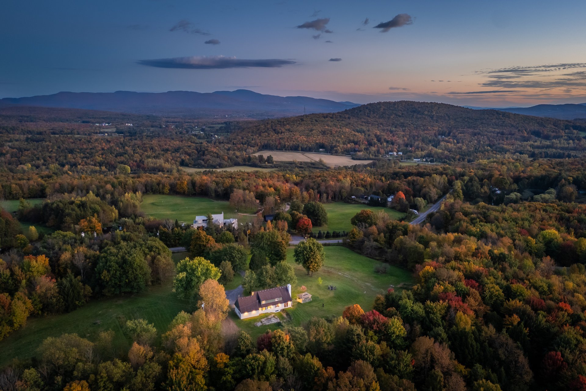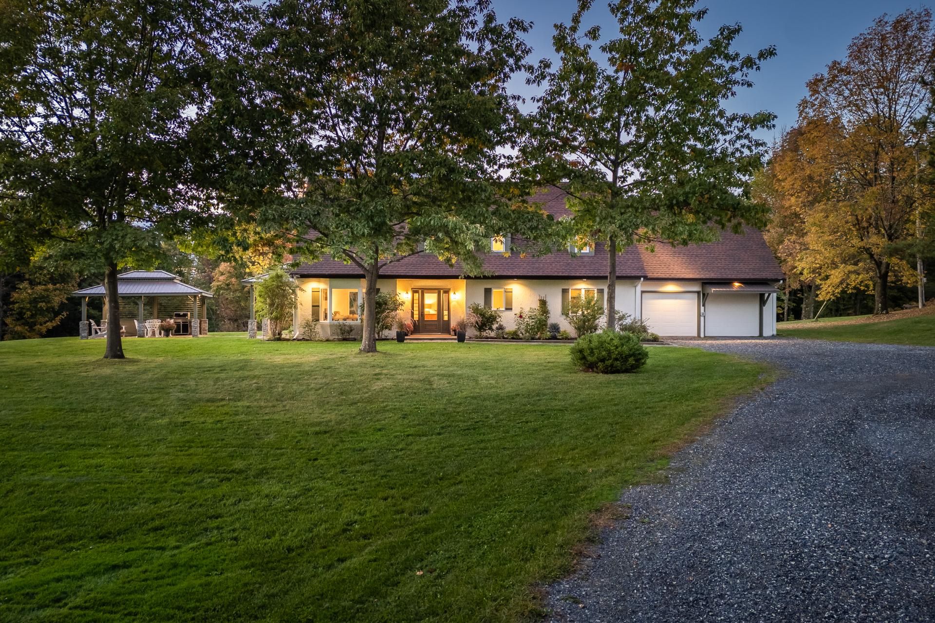 Grande propriété offrant de belles vues des monts Sutton et Pinacle. La résidence est sise sur un terrain zoné vert de 26,7 acres. Localisation idéale, à seulement 100 km du Pont Champlain, 5 minutes de Knowlton, 13 km de Sutton et 15 km de Bromont. Comprenant plus de 3 500 pc d'aire habitable, incluant le sous-sol complètement aménagé, la maison est spacieuse et bien divisée. Le tout complété par un garage double attaché et une remise. La propriété offre 4 chambres à coucher, 3 salles de bain, dont une attenante à la chambre des maîtres située au rez-de-chaussée. Beaucoup de rangements. Toit cathédrale, foyer au bois et jolie mezzanine.