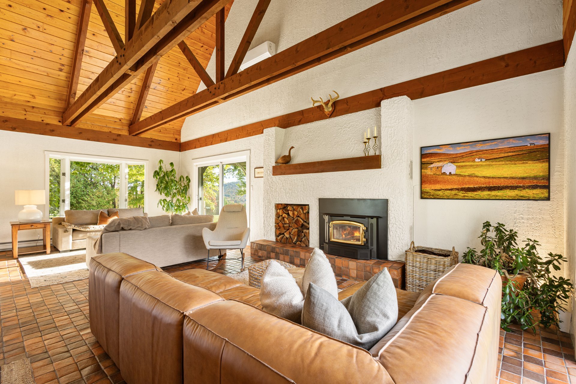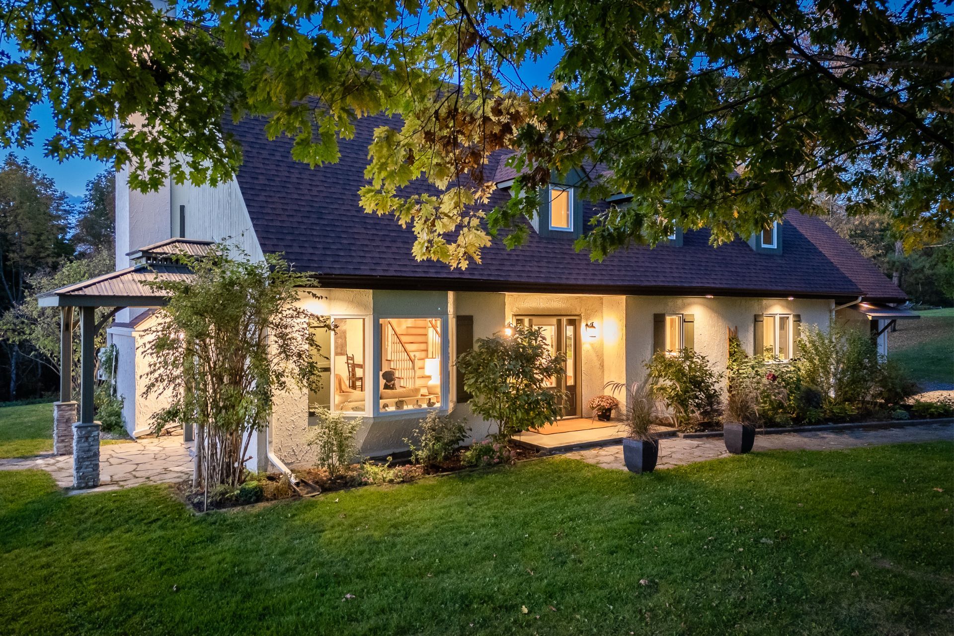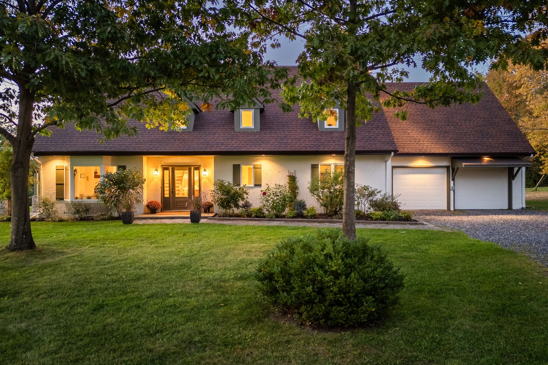 Grande propriété offrant de belles vues des monts Sutton et Pinacle. La résidence est sise sur un terrain zoné vert de 26,7 acres. Localisation idéale, à seulement 100 km du Pont Champlain, 5 minutes de Knowlton, 13 km de Sutton et 15 km de Bromont. Comprenant plus de 3 500 pc d'aire habitable, incluant le sous-sol complètement aménagé, la maison est spacieuse et bien divisée. Le tout complété par un garage double attaché et une remise. La propriété offre 4 chambres à coucher, 3 salles de bain, dont une attenante à la chambre des maîtres située au rez-de-chaussée. Beaucoup de rangements. Toit cathédrale, foyer au bois et jolie mezzanine.